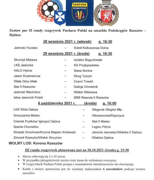 Aktualności Puchar Polski runda II 19 września 2021 Gallery Published by: admin Puchar Polski II runda na szczeblu Podokręgów Rzeszów – Dębica