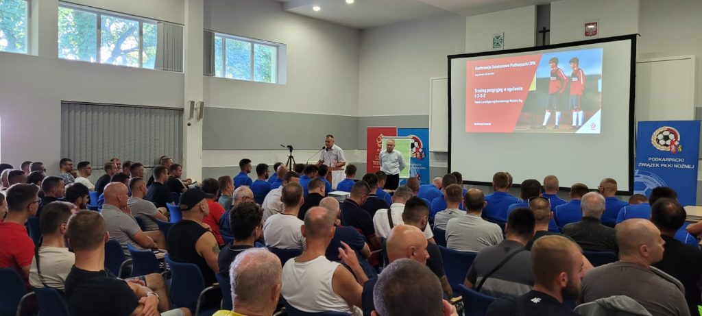 Kolejna konferencja trenerów organizowana przez Wydział Szkolenia Podkarpackiego ZPN odbyła się 06.08.br. w Boguchwale. Uroczystego otwarcia dokonał wiceprezes Podkarpackiego ZPN Wiesław Lada, który w imieniu prezesa Mieczysław Golby w mowie przewodniej podkreślił niezwykle ważną rolę trenera w rozwoju młodego piłkarza. Głównymi prelegentami byli – trener młodzieżowych kadr Polski, obecnie odpowiedzialny za projekt PZPN Talent Pro Bartłomiej Zalewski oraz autor trylogii „Gotowy do gry” Waldemar Warchoł. Zarówno część teoretyczna – hotel „ Podkarpacki” jak również część praktyczna – stadion „Izolatora” była przeprowadzona na bardzo wysokim poziomie. Tematem przewodnim był system 1-3-5-2 oraz periodyzacja taktyczna w niższych klasach rozgrywkowych. W konferencji uczestniczyło ponad 250 trenerów reprezentujących wszystkie Związki południowej Polski. Była to kolejna konferencja organizowana przez Podkarpacki ZPN, poprzednia 11.07.br. w Krośnie – również ponad 250 uczestników. Na kolejne konferencje zapraszamy w listopadzie i grudniu 2022r. Wobec dużej ilości przeprowadzanych konferencji/warsztatów przez Podkarpacki ZPN jesteśmy niemal pewni, że żadnemu trenerowi na Podkarpaciu nie zabraknie pkt. potrzebnych do przedłużenia licencji.